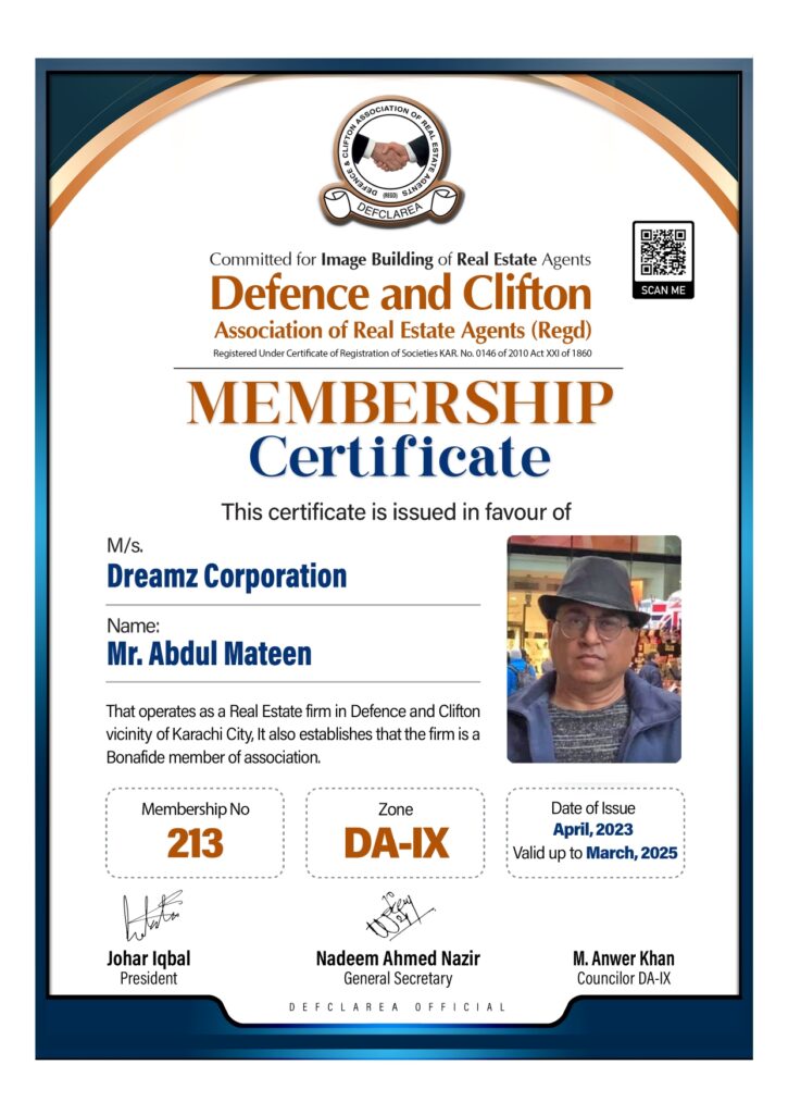 At Dreamz Corporation, we have been a registered and authorized real estate agent in DHA Karachi for the past 22 years, and we are proud to serve as an exclusive registered agent for EMAAR Pakistan. Our services extend beyond Pakistan, offering seamless property transfer, sale, and purchase facilities in Canada and the USA. In Canada, we collaborate with licensed property agents to facilitate property transactions, ensuring a smooth process for our clients.